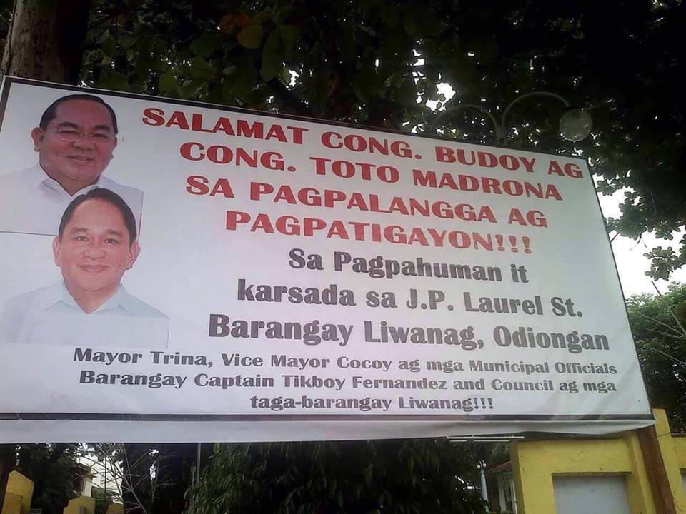 Kalat sa iba't ibang bayan ng lalawigan ng Romblon ang tarpaulin na may mukha nina Congressman Emmanuel Madrona at dating Congressman Eleandro Jesus Madrona.