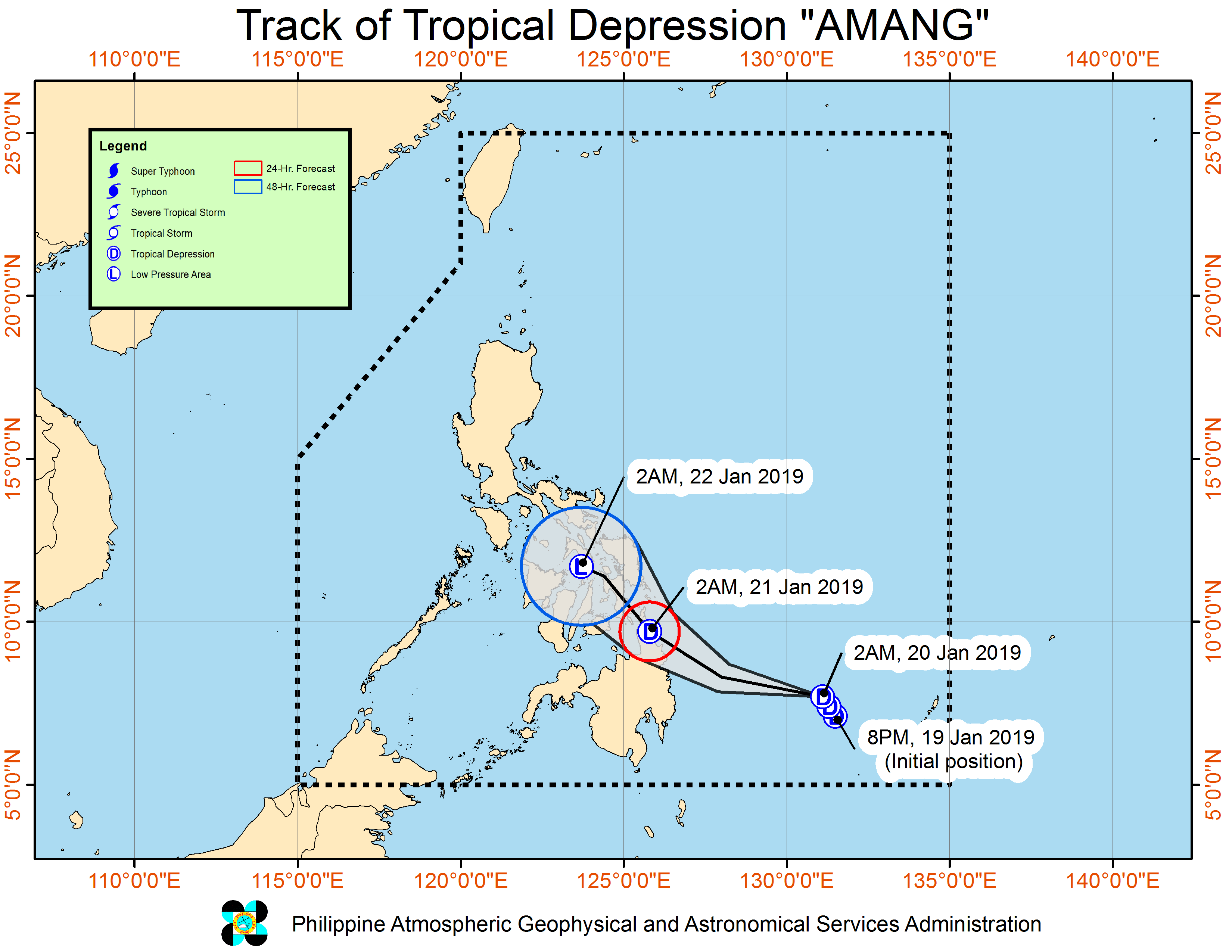 Huling namataan ang bagyong pinangalanang Amang kaninang alas-4 ng umaga sa layong 460 km East bg Hinatuan, Surigao del Sur at gumagalaw patungong North Northwest sa bilis na 15 kph.