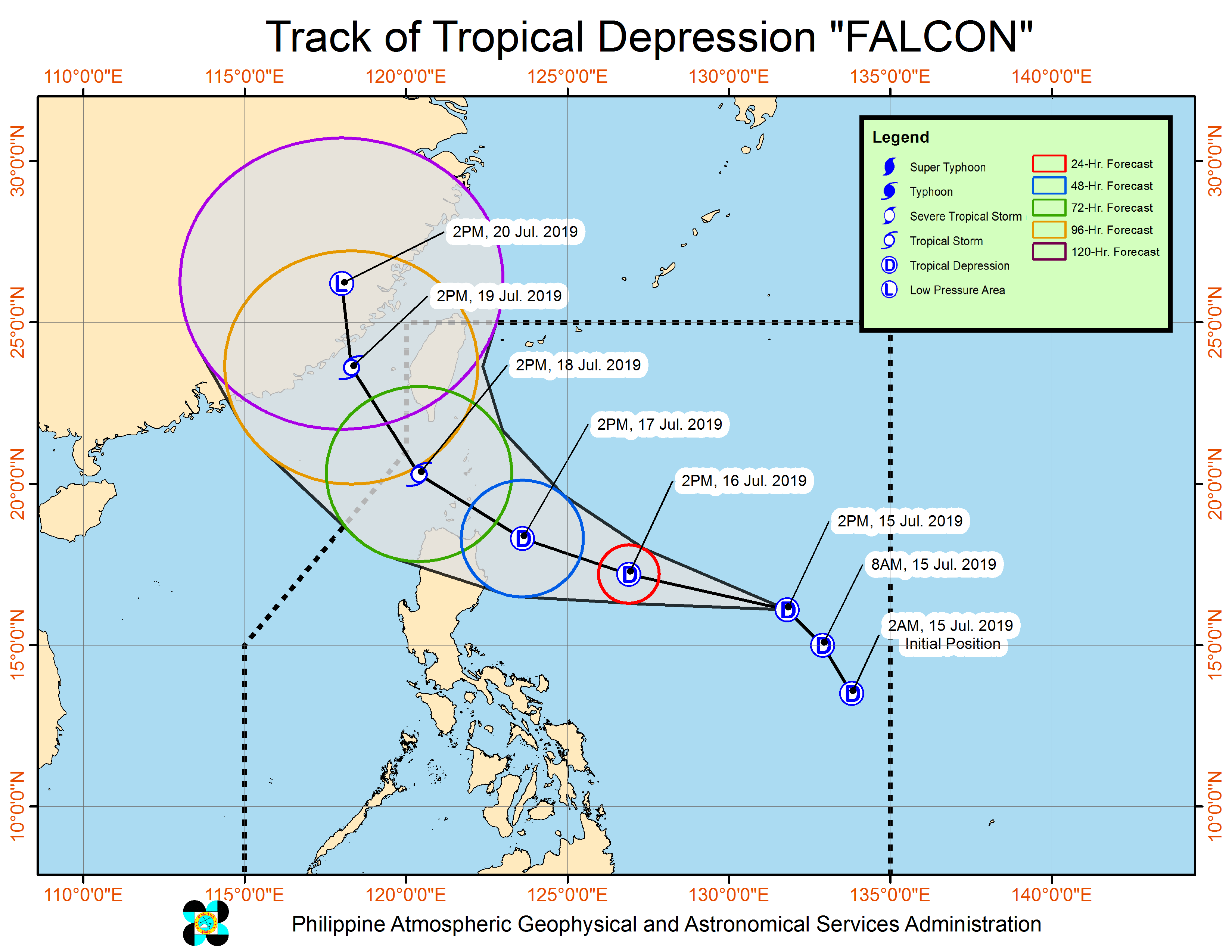 Huling namataan ng Philippine Atmospheric, Geophysical and Astronomical Services Administration (PAGASA) ang bagyong Falcon kaninang alas-10 ng umaga sa layong 940 km East Northeast ng Virac, Catanduanes.