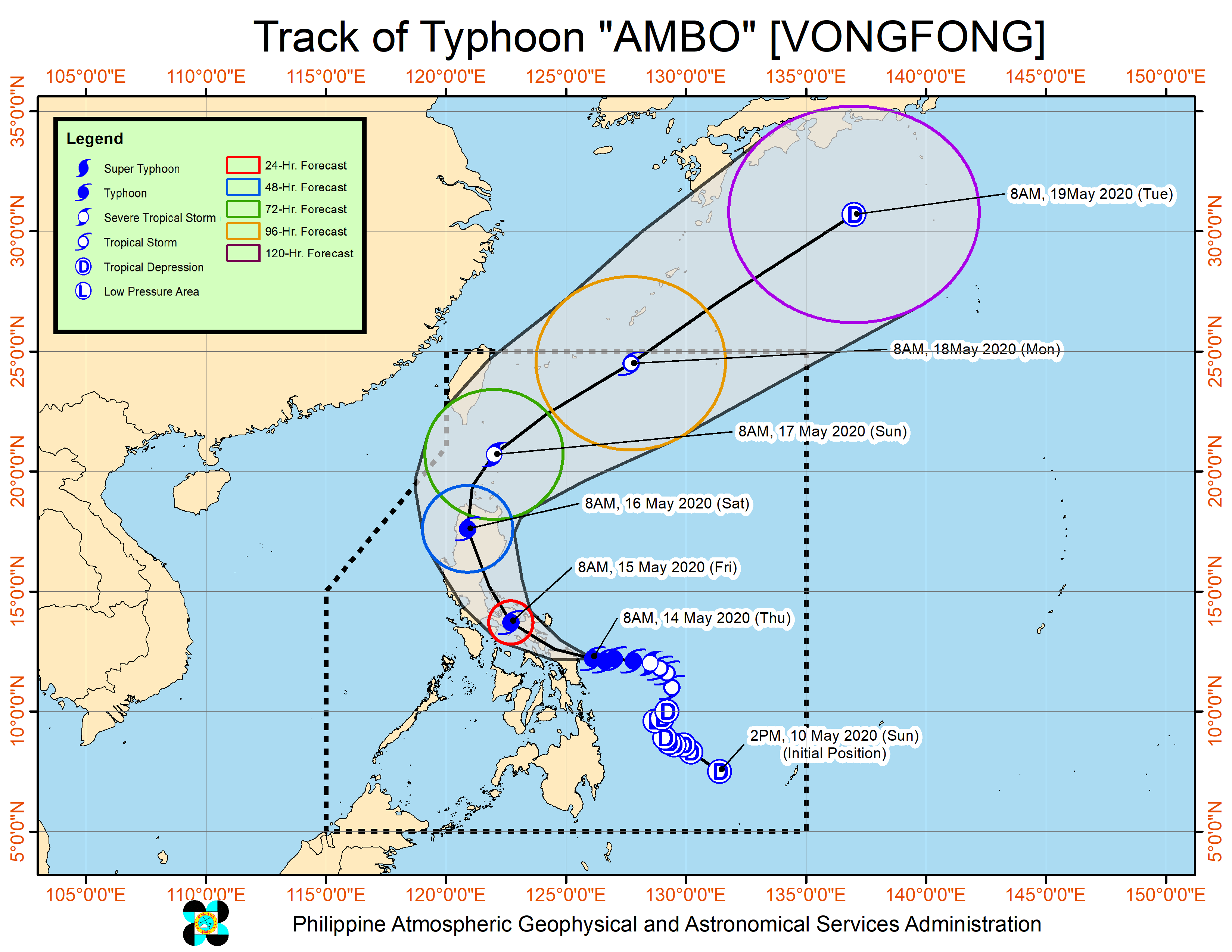 Si bagyong #AmboPH ay nasa layong 140km East Southeast ng Catarman, Northern Samar at inaasahang magla-landfall mamayang hapon bago tumungo ng Sorsogon mamayang gabi.