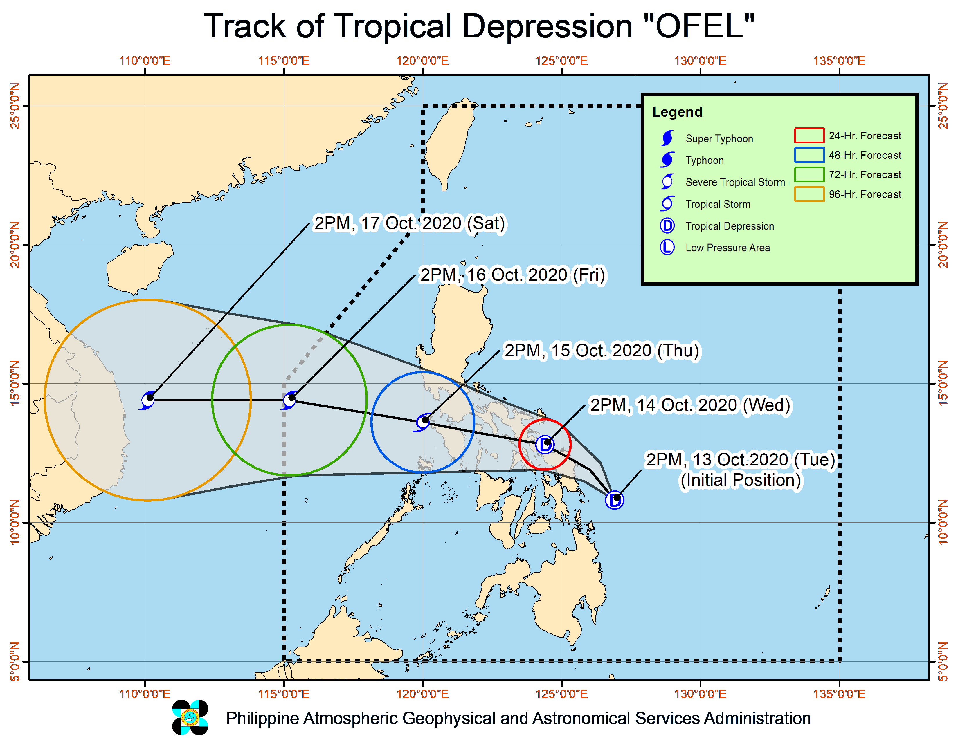 Tuluyan ng naging bagyo nitong hapon ng Martes, October 13, ang low-pressure area (LPA) na binabantayan malapit sa Guiuan, Eastern Samar at pinangalang bagyong Ofel.