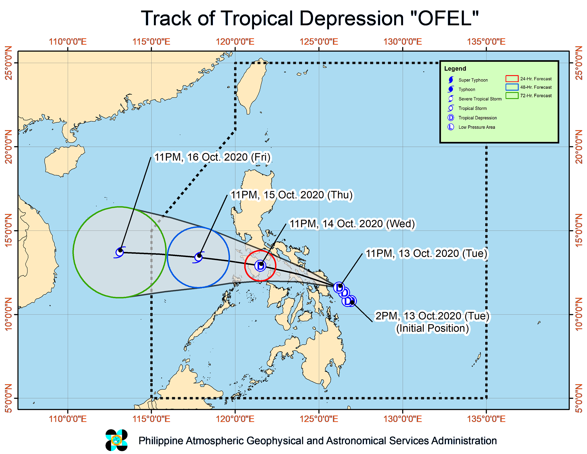 Ayon sa Pagasa, ang bagyong Ofel ay nasa layong 30km East Northeast ng Borongan City, Eastern Samar at inaasahang magla-landfall sa Eastern Samar area ngayong araw bago tumawid ng Samar Sea.