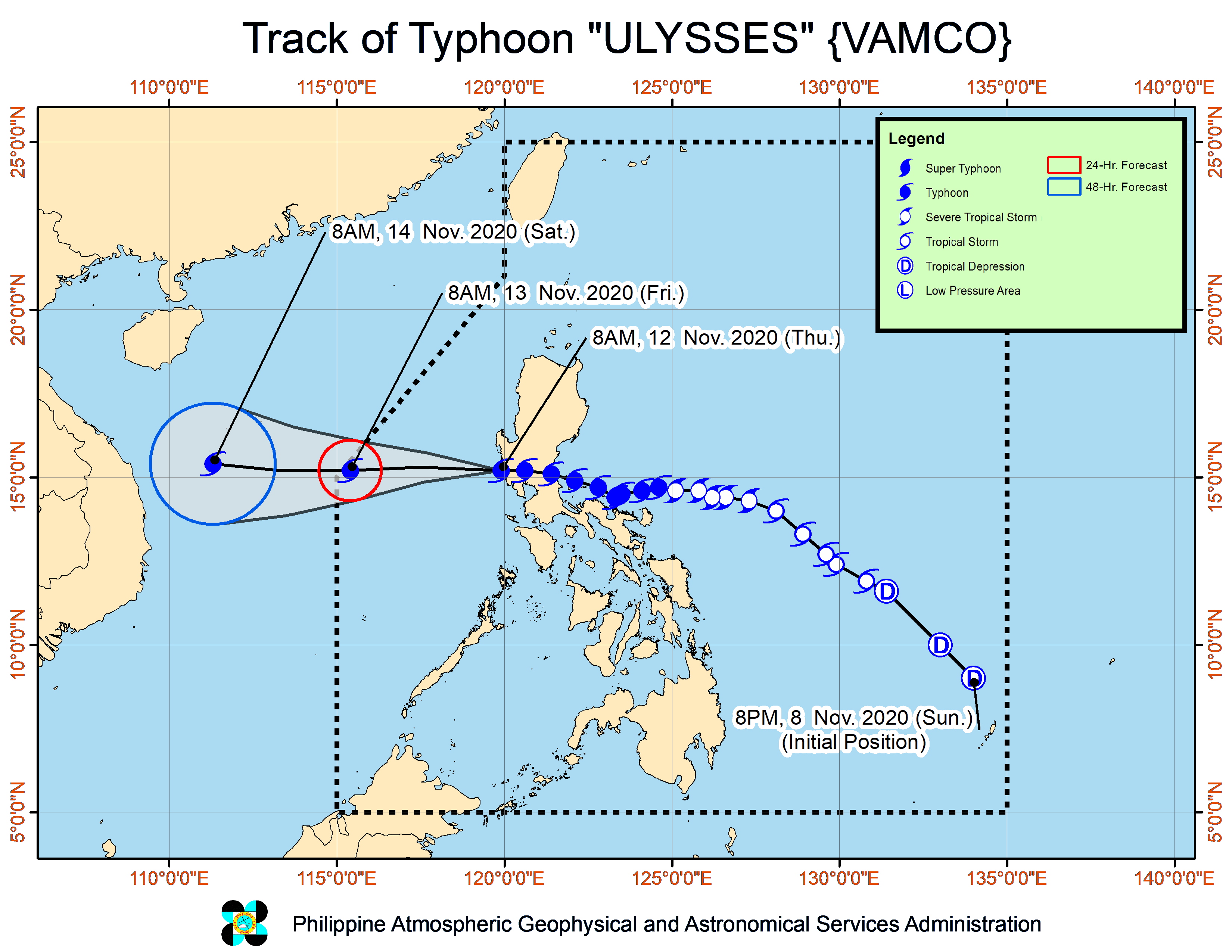 Ayon sa PAGASA, ang bagyong Ulysses ay huling namataan sa layong 85km West ng Iba, Zambales o ngayon ay nasa West Philippine Sea.