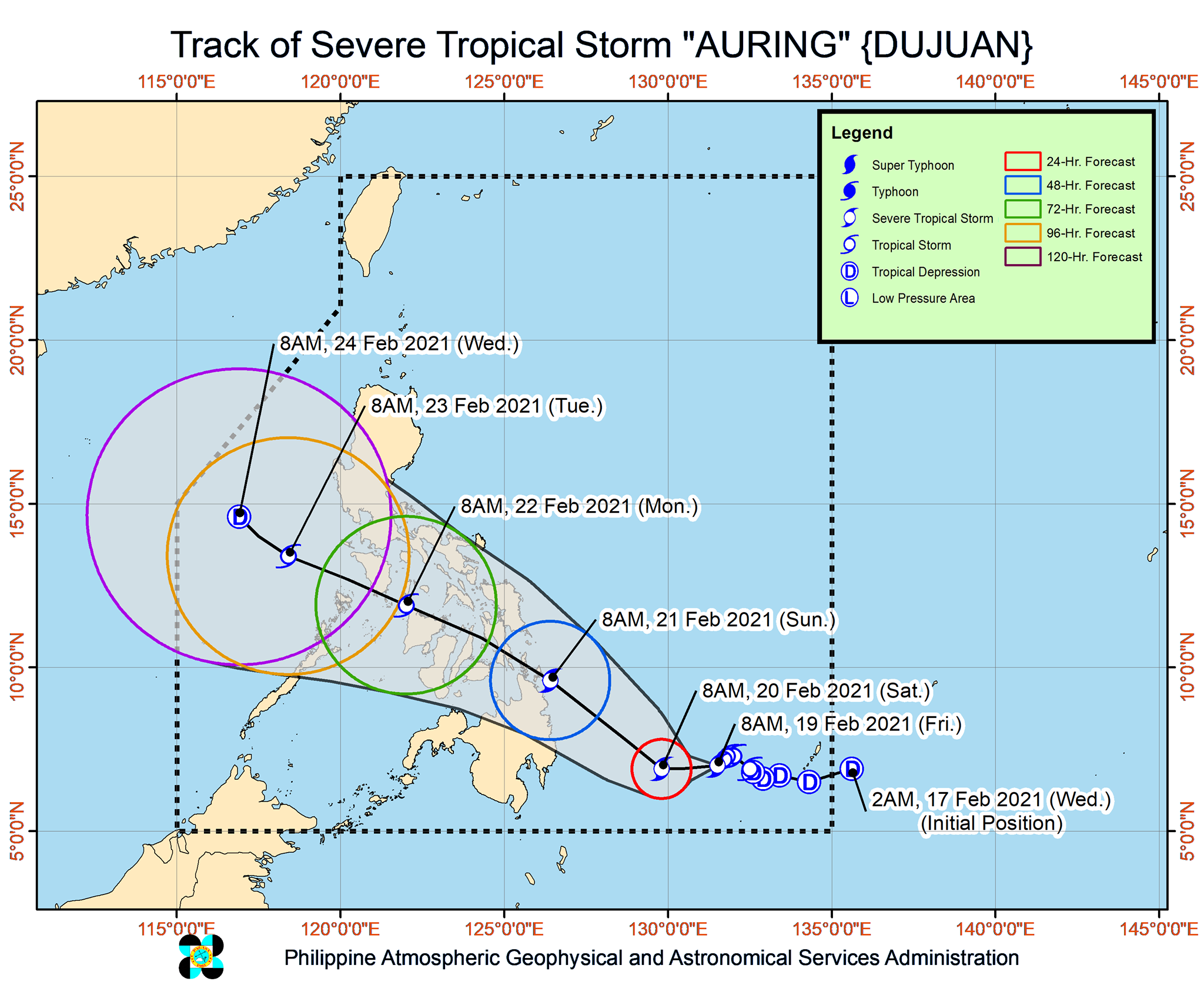 Dating isang tropical depression, lumakas si Auring at naging Severe Tropical Storm.