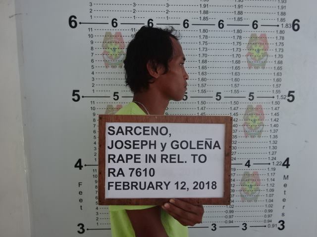 Dahil sa kasong pangagahasa ng menor de edad, inaresto ng mga tauhan ng Looc Municipal Police Station sa pangunguna ni Police Senior Inspector Jedi Galicha si Joseph Sarceno nitong Lunes ng tanghali.