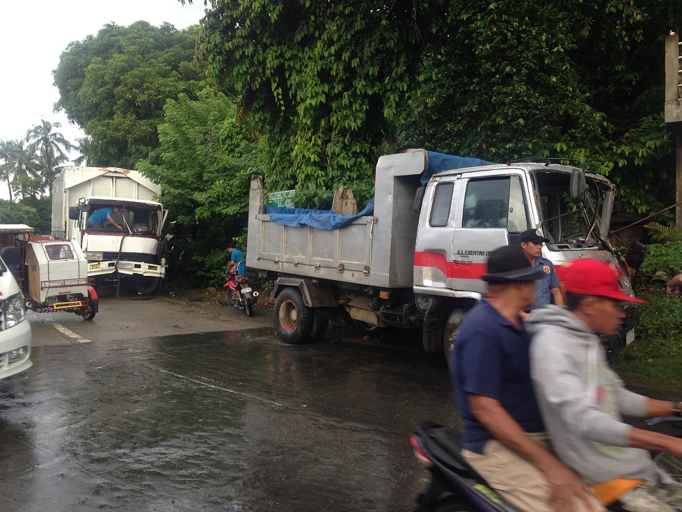 Sugatan at nagtamo ng minor injury ang driver ng delivery truck at ng dump truck matapos na magsalpukan sa kasagsagan ng malakas na ulan sa bayan ng Odiongan, Romblon ngayong hapon.