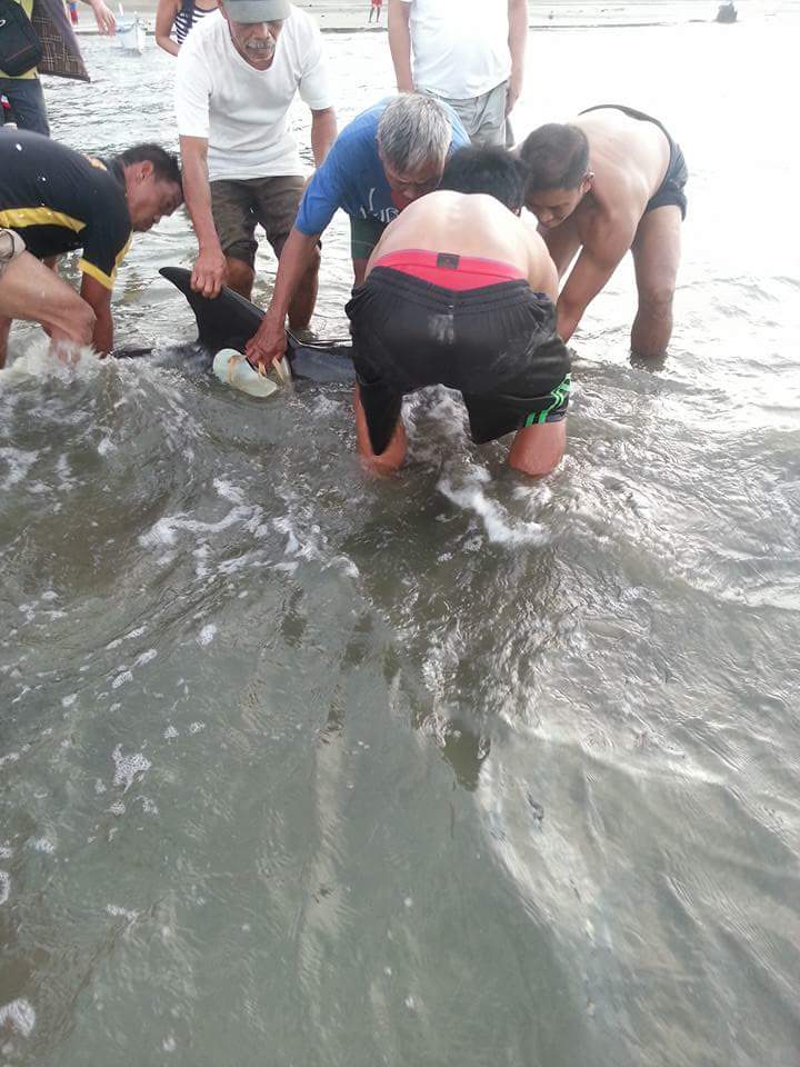 Nasagip ang dolphin bandang 4:30 matapos makita itong nasa baybayin.