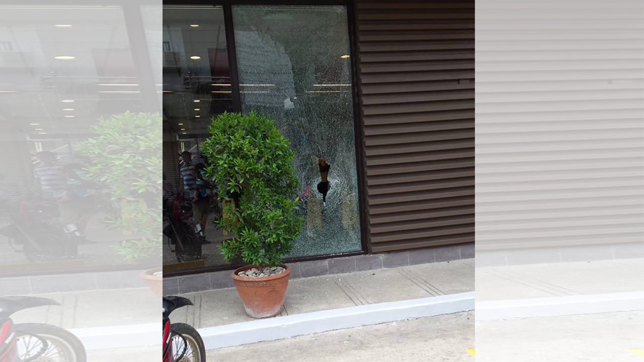 Nabasag ang mga salamin ng building ng RRJ at ng Jollibee sa bayan ng Odiongan matapos na mapagtripang batuhin ng bote ng isang lalaking pinaghihinalaang may sakit sa pag-iisip.