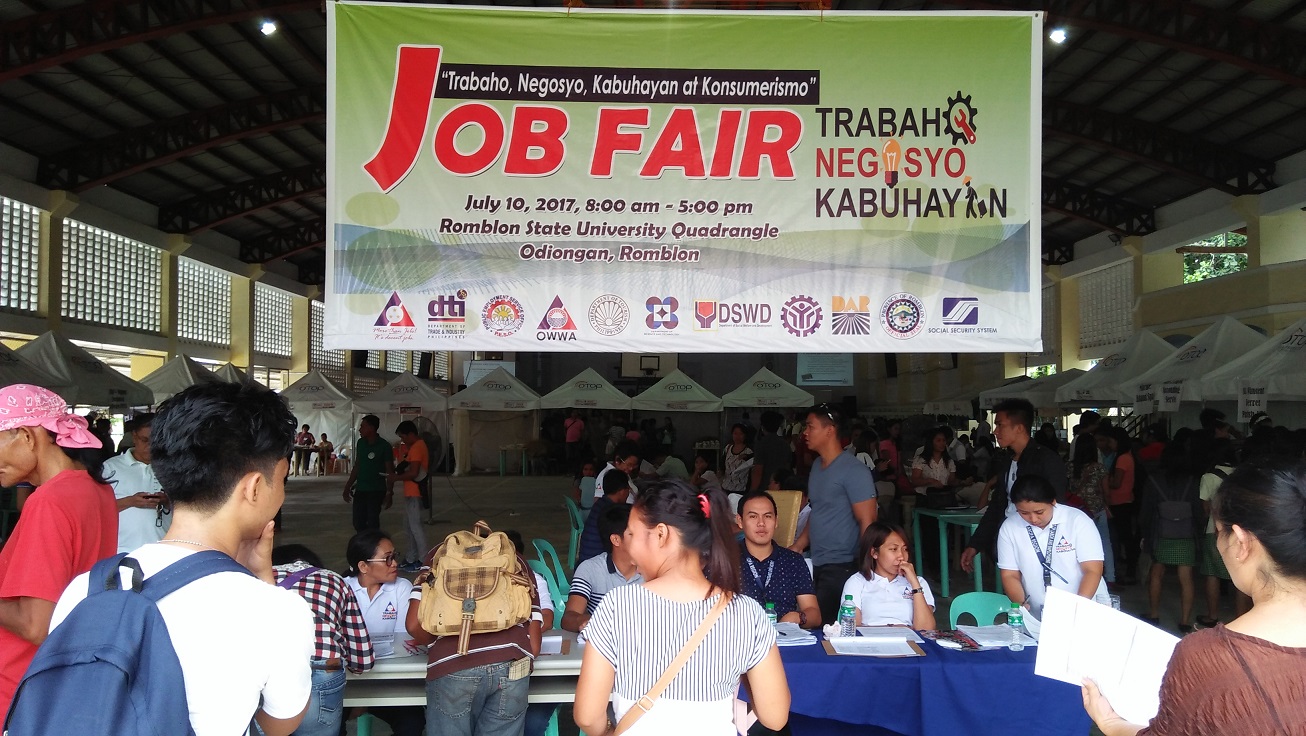 Binuksan ngayong araw ang isang araw na Job Fair sa Odiongan, Romblon sa pangunguna ng Department of Labor and Employment (DOLE) at Department of Trade and Industry (DTI) na ginanap sa Romblon State University (RSU) covered court kung saan ay dinagsa ito ng mga job seekers na mga Romblomanon.