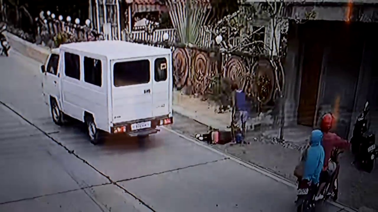 Sa isa pang kuha ng cctv makikita ang pagtigil ng van kasabay nito ang pag gulong ng babaeng biktima sa gilid ng kalsada.