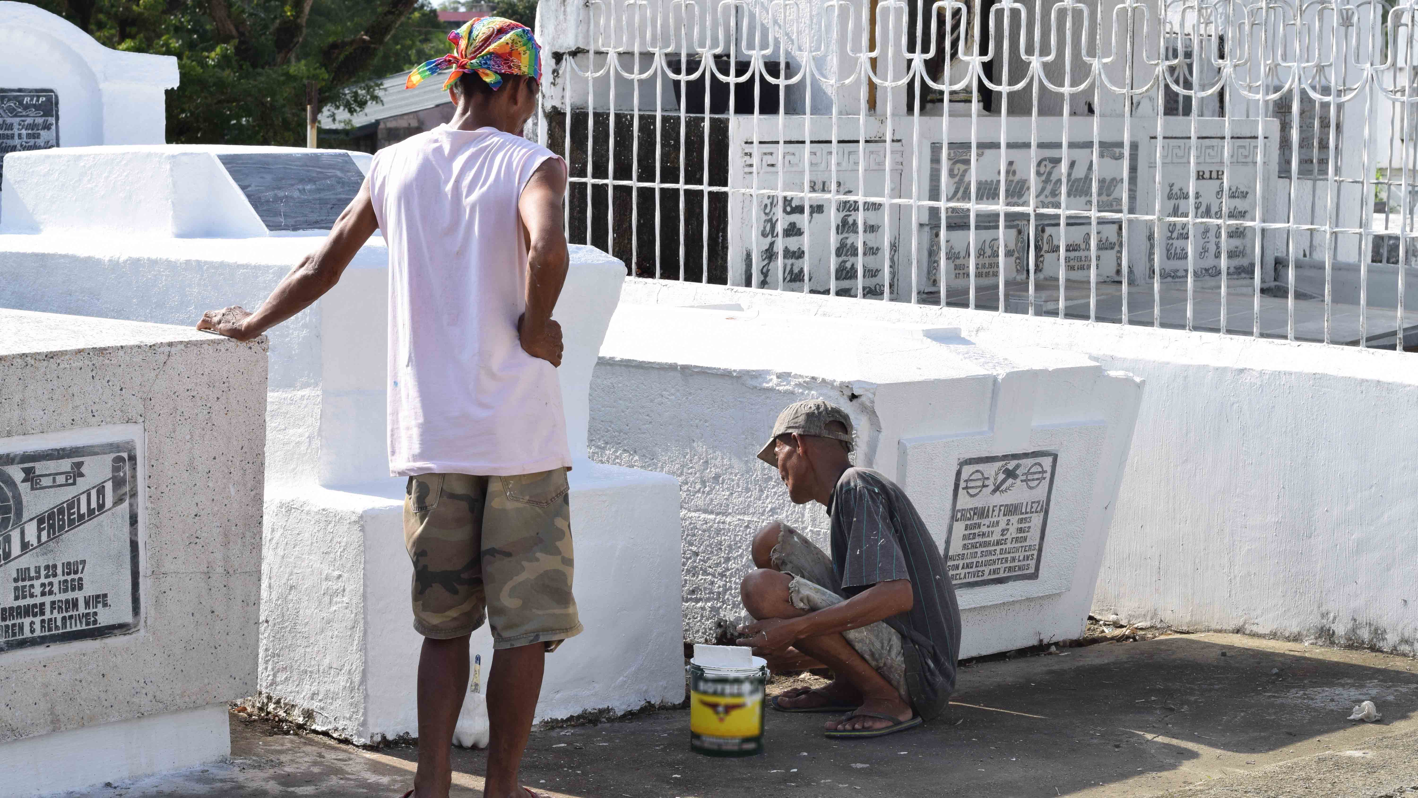 Sa Dapawan Public Cemetery sa bayan ng Odiongan, may pailan-ilan ng tumungo sa sementeryo para magpintura, at maglinis ng mga damo sa paligid ng nitso ng kanilang mga yumaong mahal sa buhay.