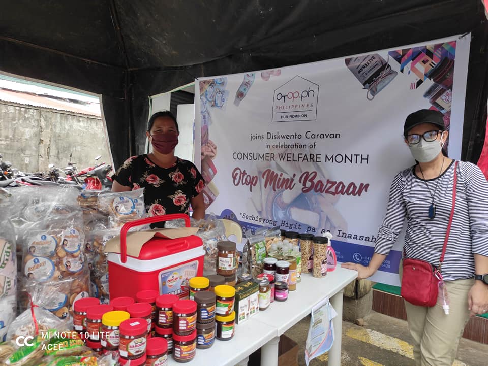 Maliban sa mga groceries, naglatag rin ng booth ang One Town, One Product (OTOP) Hub sa labas ng Baymart Tablas upang ibenta rin sa murang halaga ang mga pagkain at kagamitang gawa sa lalawigan.