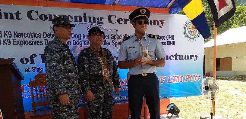 Panauhing pandangal sa naturang seremonya si Capt. Julius Caesar Victor Marvin V. Lim, Commander, Coast Guard District Southern Tagalog, kung saan kanyang binati ang mga sumailalim sa specialization course upang sanayin at turuan ang mga alagang aso.