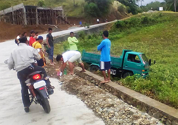 Isang truck ang nahulog sa gutter habang ito ay papaakyat sa Inutod Bukid sa bayan ng Sta. Maria ngayong tanghali.