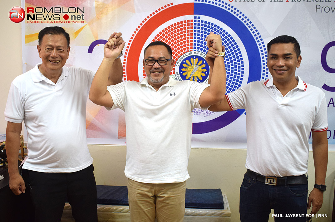 Opisyal ng naghain ngayong Lunes, October 15, ng kanilang kandidatura para sa matataas na pwesto ng probinsya ng Romblon ang tandem nina incumbent Governor Eduardo Firmalo, Former Calatrava Mayor Robert Fabella at incumbent SP Felix Ylagan.