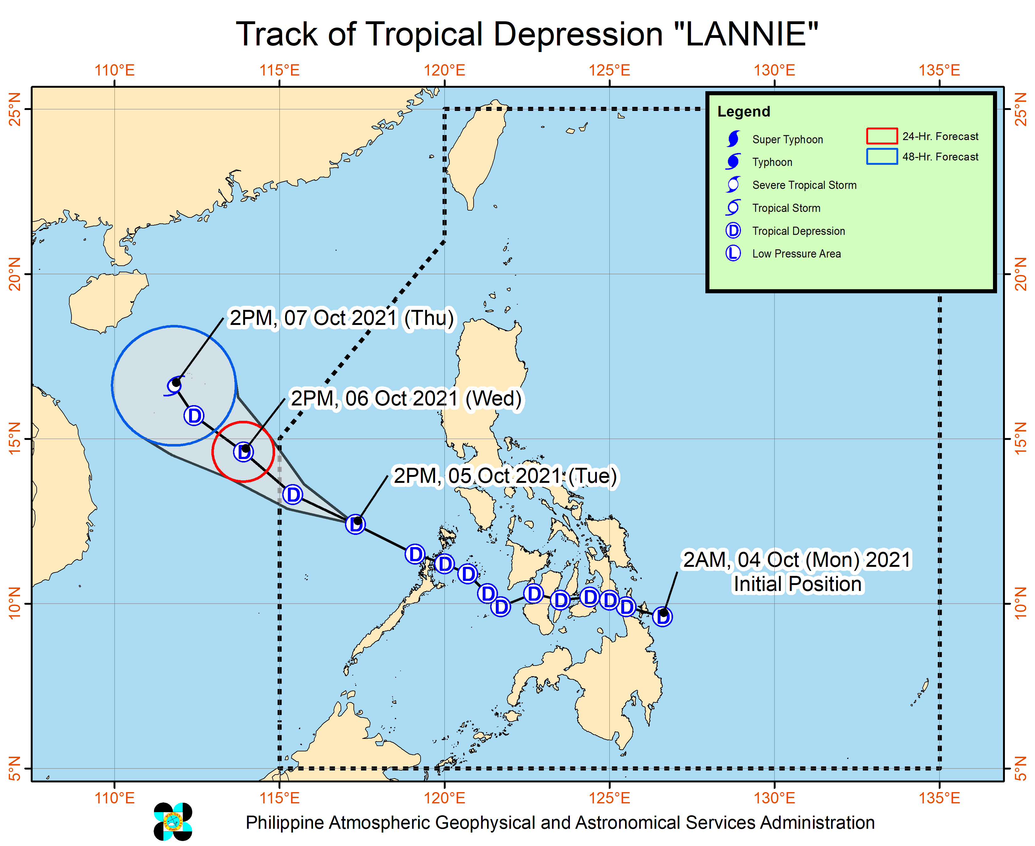Ariel Rojas of the Philippine Atmospheric, Geophysical and Astronomical Services Administration (PAGASA) said Tropical Depression Lannie has accelerated and is now moving 30 kph west northwestward.