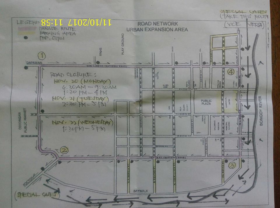 Ayon sa Road Network na napagkasunduan sa coordination meeting kahapon sa Legislative Building, isasara ang major roads sa bayan sa mga sumusunod na araw: