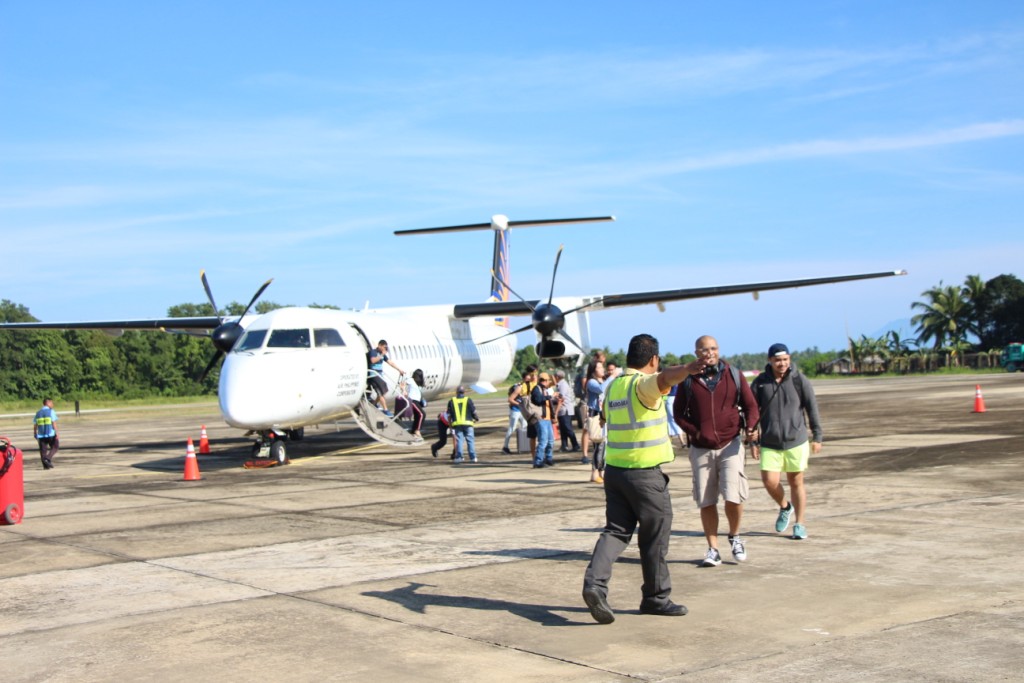 Sa kauna-unahang biyahe, lumapag sa paliparan ng San Vicente ang bagong Bombardier Next-Generation Q400 turboprop aircraft sakay ang halos 100 pasahero.