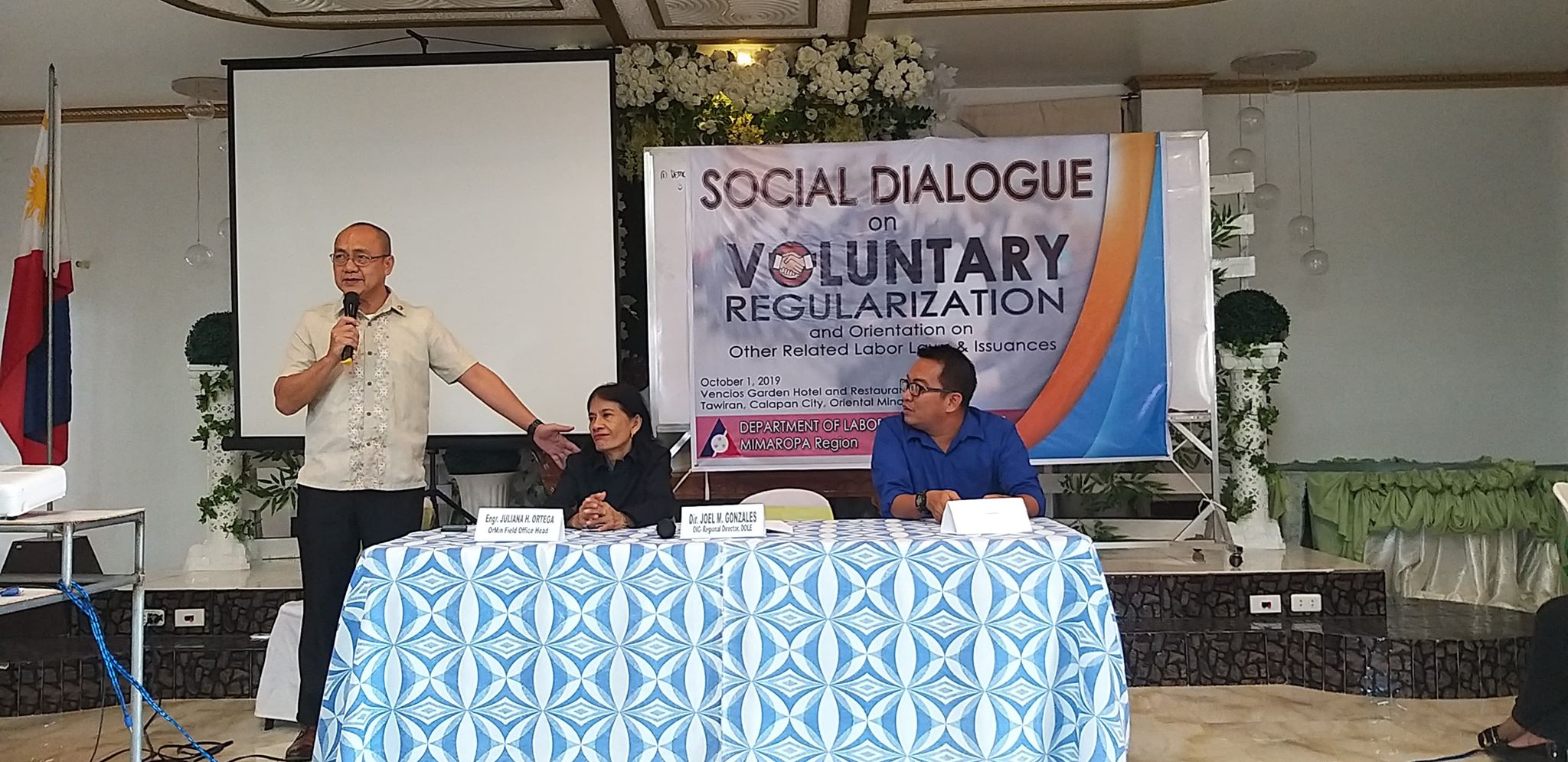 The program essentially aspires to increase awareness among employers and employees in private firms in the province in understanding the core of voluntary regularization as mandated by Labor Code.