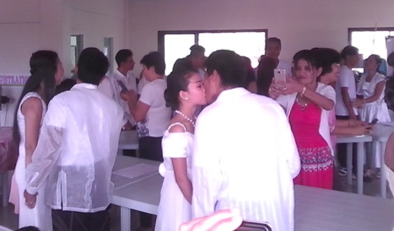 Sabay-sabay na nag "I Do" ang siyam na magsing-irog at sabay-sabay ring sinunod ang utos na "You May Kiss The Bride".