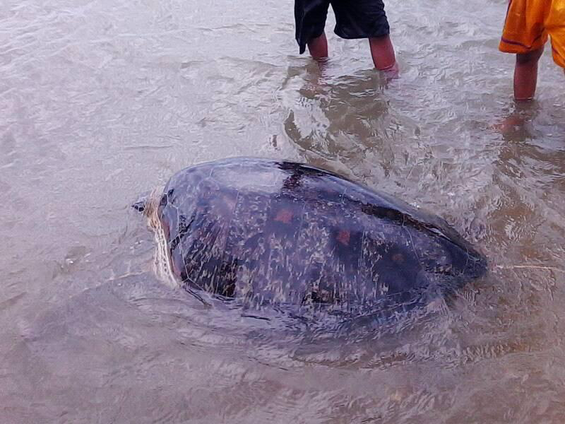 Pinagkaguluhan naman ang pawikan nang makita ng taong bayan. Agad namang ibinalik sa dagat ang pawikan matapos suriin at makitang walang sugat.