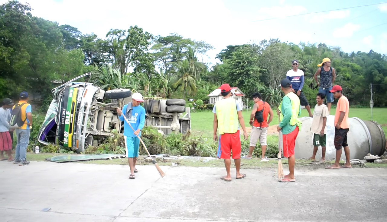 Ayon sa driver na si Lorgie Galicia, nag-overtake umano siya sa isang motorsiklo ngunit pagbalik umano nito sa kanyang linya ay nawalan siya ng kontrol sa sasakyan hanggang sa humiwalay ang lagayan ng semento sa kanyang dinadalang sasakyan.