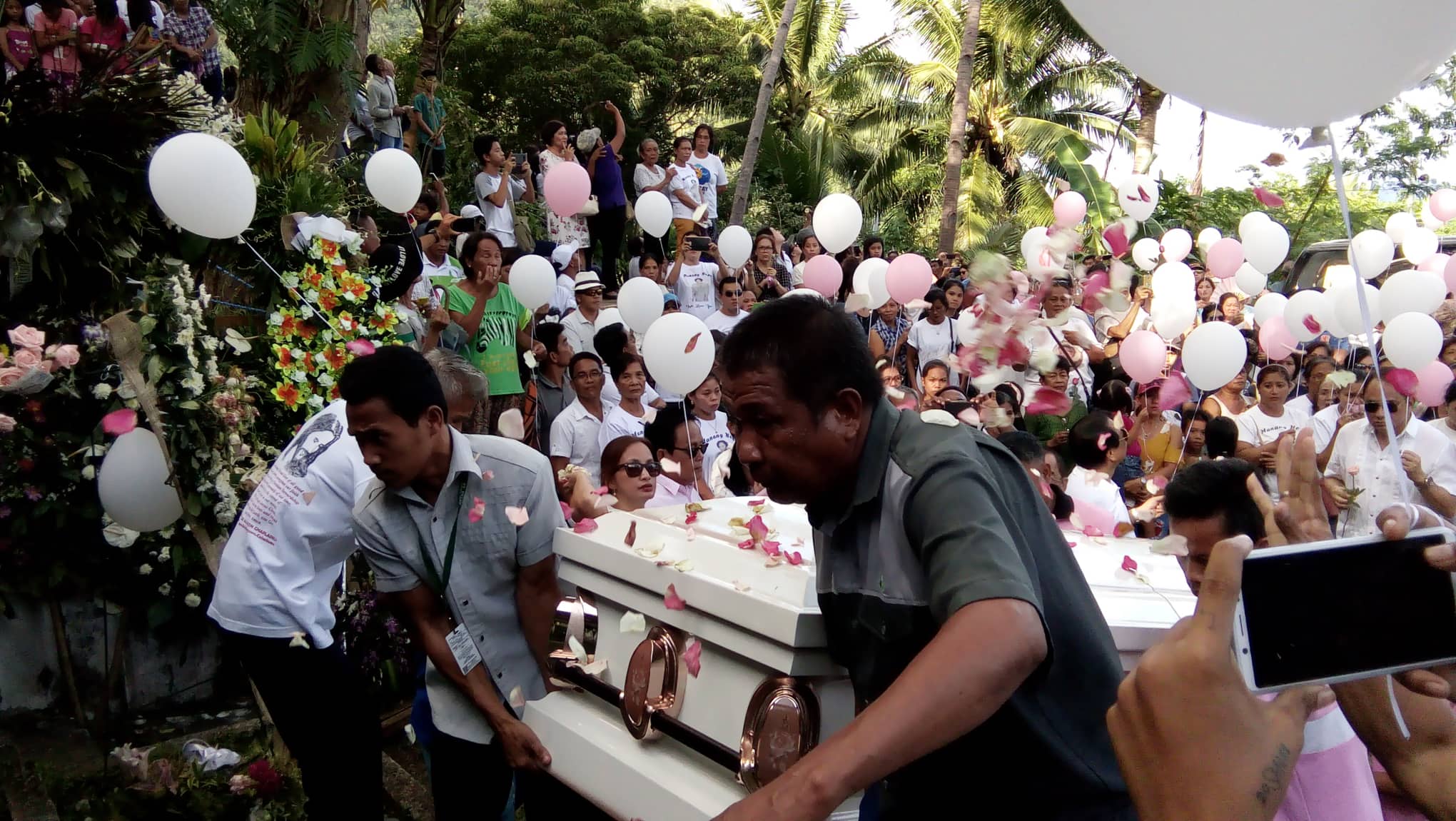 Napuno ng mga nakakulay puting taga-suporta at nagmamahal sa pamilya Madrona ang Bachawan Public Cemetery sa San Agustin, Romblon kung saan inilibing si Gng. Madrona o mas nakilala rin sa tawag na 'Momsie'.