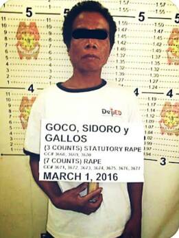 Nadakip ang suspek na may kasong 3 statutory at 7 rape, sa kanyang tinutuluyang bahay sa Sitio Punta, Barangay Bachawan, San Agustin.