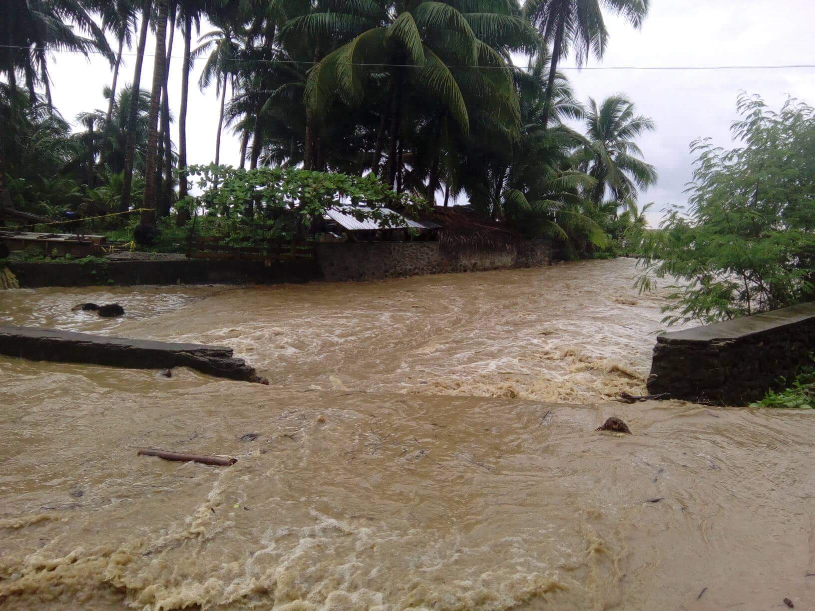 Hirap madaanan ang isang tulay na bahagi ng Tablas Circumferential Road sa Baragay Bonga, Santa Maria, Romblon matapos na umapaw ang isang creek sanhi ng walang tigil na ulan nitong magdamag.