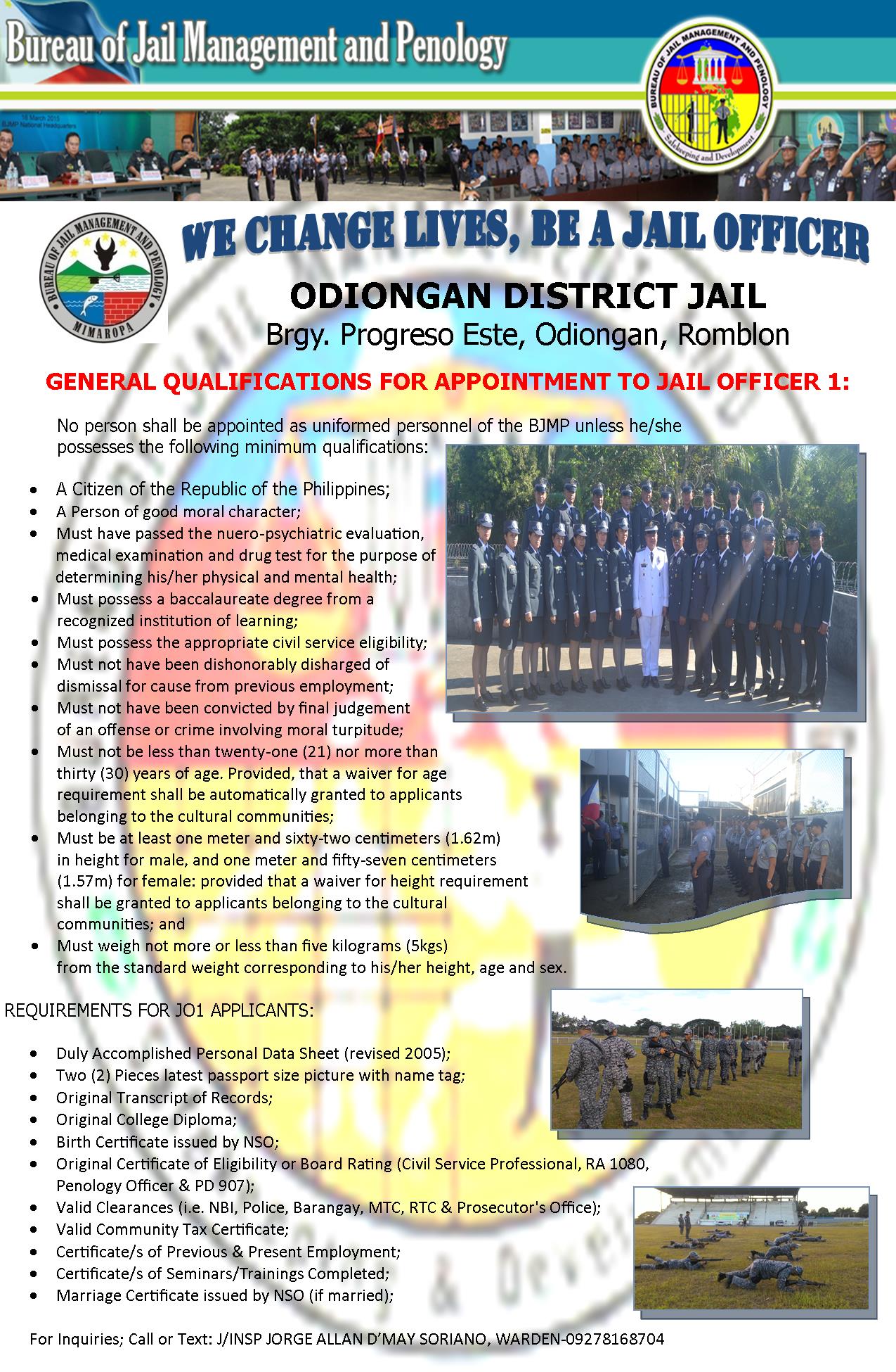 BJMP-Odiongan ready to recruit new jail officers Published: 05 February 2016 Written by Romblon News Twitterby Romblon News | Friday, 05 February 2016 Author: Romblon NewsWebsite Administrator More Articles from the Author Mabilis at malapit mag-withdraw sa Cash Agad ng BDOYouth Eco-Warrior mula sa Romblon naghain ng CONA para sa Partylist Election sa 2022Philippine vice president Robredo files candidacy for presidential electionW. Visayas bishops add voices against Boracay casinoFacebook services restored after worldwide outage BJMP