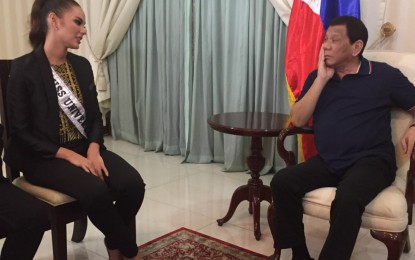 President Rodrigo R. Duterte on Thursday night met Philippine bet Miss Universe 2018 Catriona Gray in a courtesy call three days after she won the coveted title.