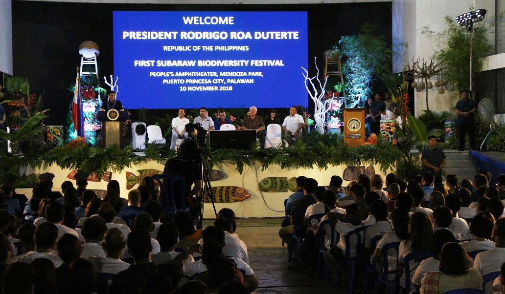 “May this festival be an occasion to strengthen your solidarity and commitment to the reputation of Palawan as the best island in the world. I wish is Subaraw Biodiversity festival better success the years to come. (Nawa’y ang festival na ito ay ipagdiriwang upang mapalakas ang inyong pagkakaisa at naipangako sa ngalan ng Palawan bilang ‘best island’ sa buong mundo…hangad ko ang tagumpay ng pagdiriwang sa mga susunod na panahon),” nilalaman ng pananalita ng Pangulo sa ginanap na programa sa People’s Amphitheater sa Mendoza Park kanina.