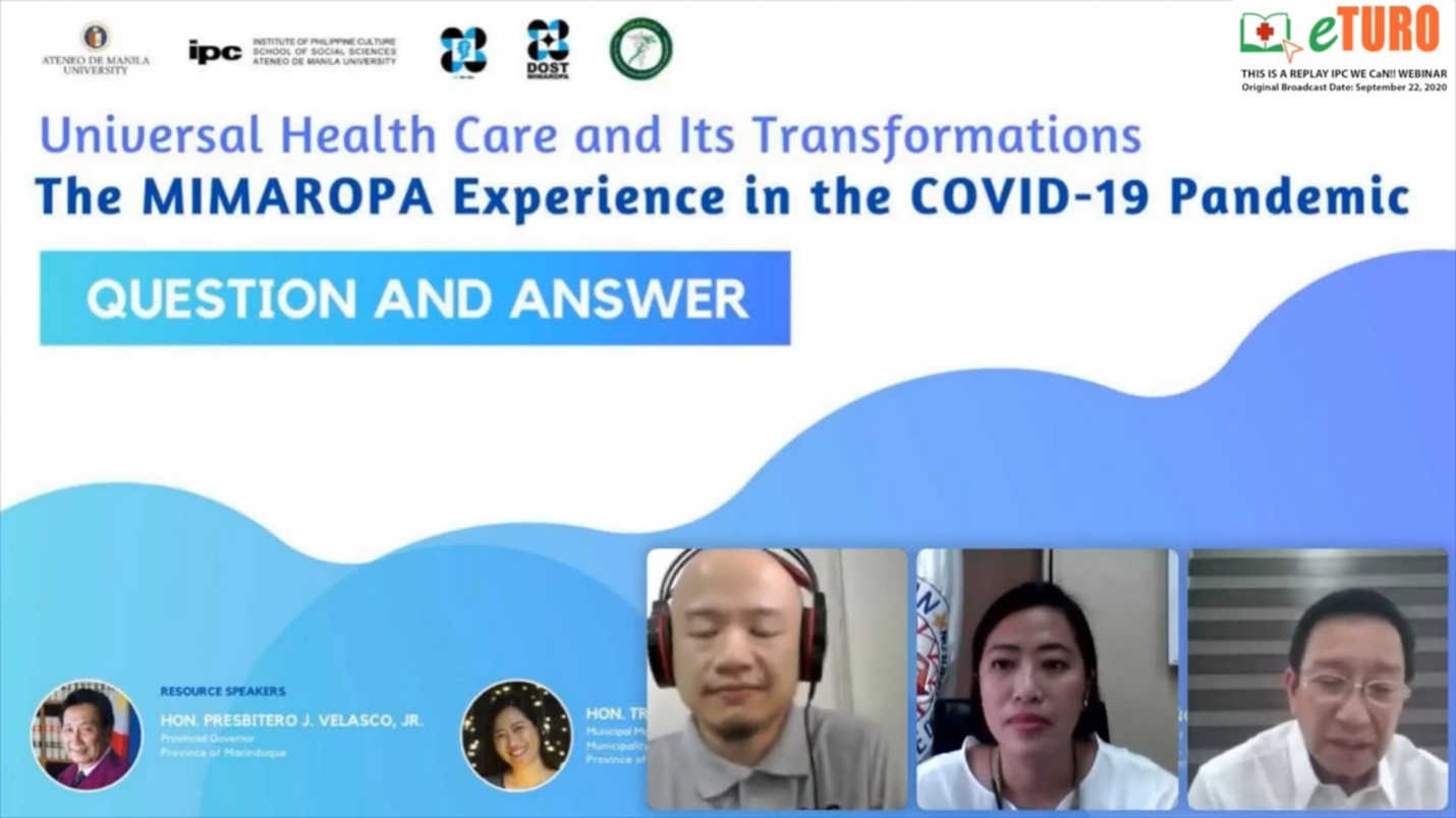 The Department of Science and Technology-MIMAROPA in partnership with the Institute of Philippine Culture – Ateneo de Manila University (IPC-ADMU) conducted a webinar on “UHC and the Transformations in the Health System: The MIMAROPA Experience” last September 22, 2020.