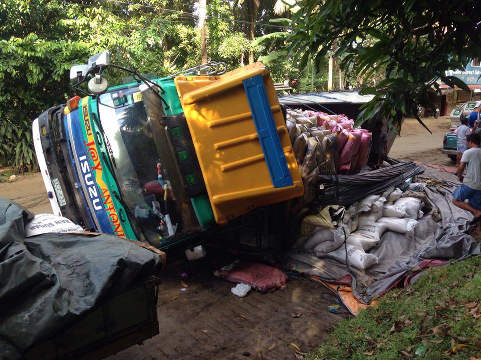 Sugatan ang driver ng isang 10-wheeler truck na may kargang mga bigas at bakal ng ito ay tumagilid kaninang madaling araw sa bayan ng Odiongan sa Romblon.