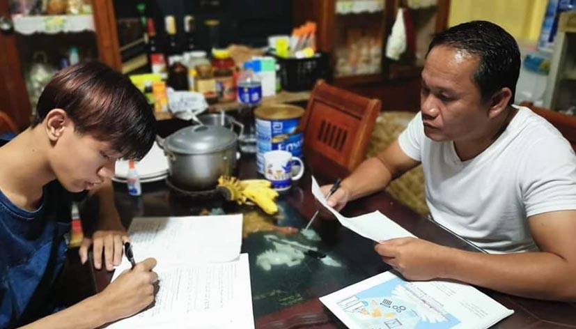 Trending ngayon ang litrato ni Mayor Elmer Fruelda ng Corcuera matapos ibahagi nito ang kanyang pag gabay sa kanyang anak na nag-aaral ng kanyang module.